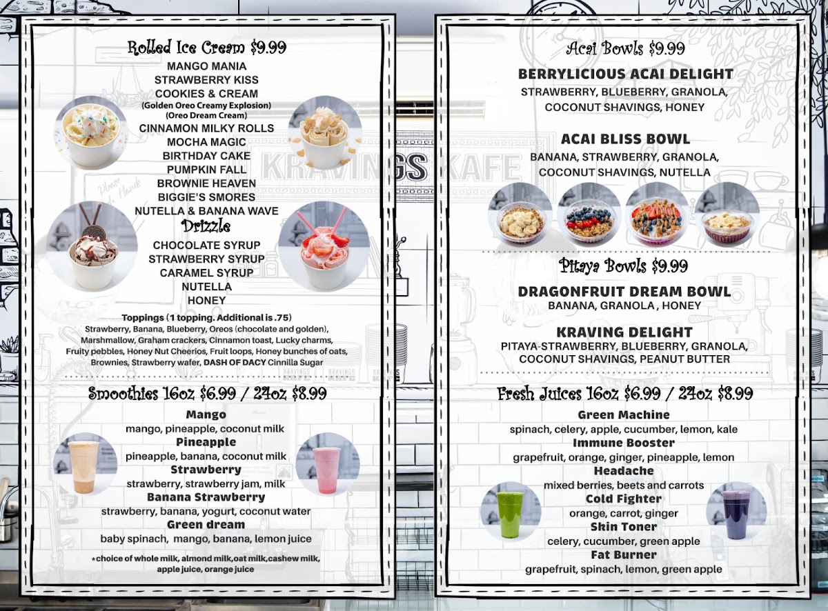 Kravings Kafe 2D offers a delightful blend of comfort food and sweet indulgences, perfect for any time of the day. Their Ice Cream is a standout, offering a creamy and rich treat with a variety of flavors that never disappoint. For those looking for something refreshing, the Mango Smoothie is a must-try, bursting with tropical sweetness and a perfect balance of flavors. To wrap up a satisfying meal, indulge in the Banana Pudding, which is a decadent, comforting dessert that leaves you craving more. The menu presents a harmonious mix of fresh ingredients and flavors that cater to a range of tastes, making Kravings Kafe 2D a great spot for both a quick bite and a satisfying dessert.